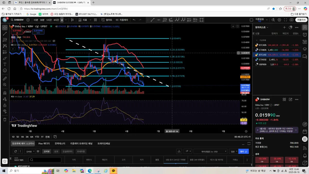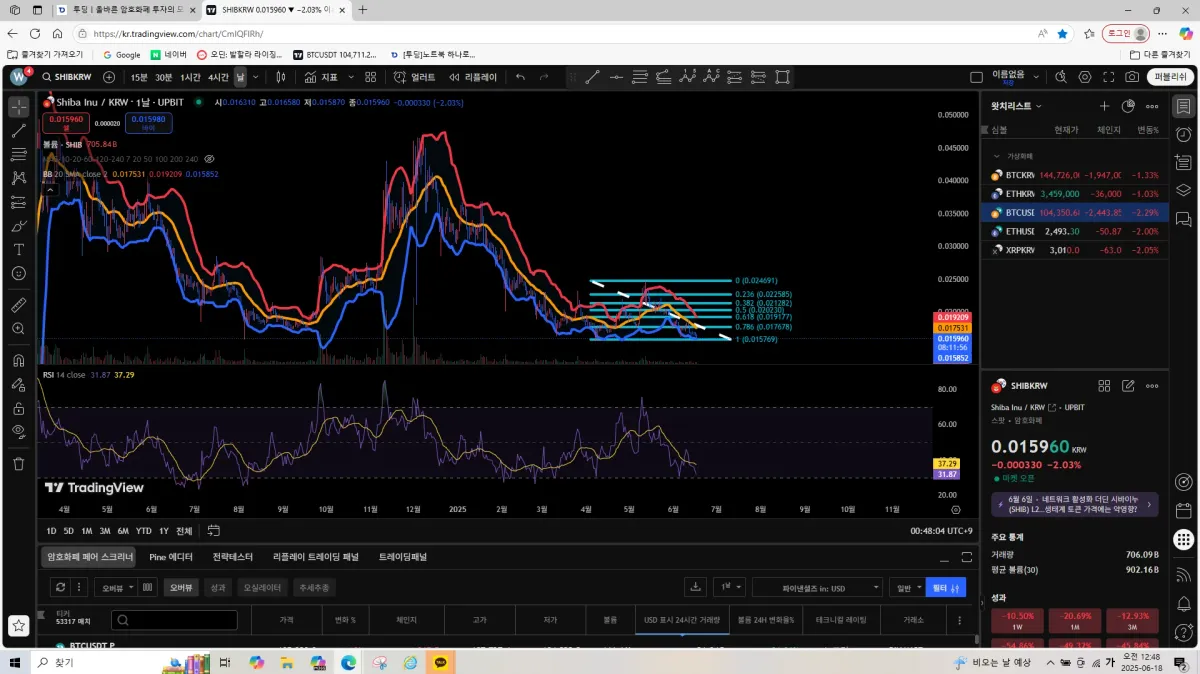 가. RSI과매도 지점으로 반등가능성을 보았음(31.87)