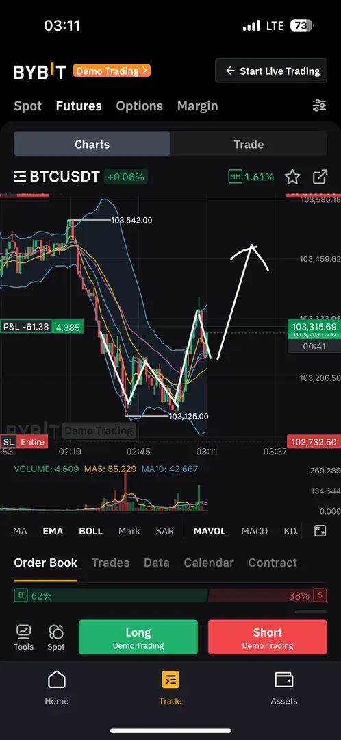 더블 바텀 후 리테스트 하는 자리라고 생각하고 들어갈 생각 이었으나 계속 보고있지 못하는 상황이었습니다!