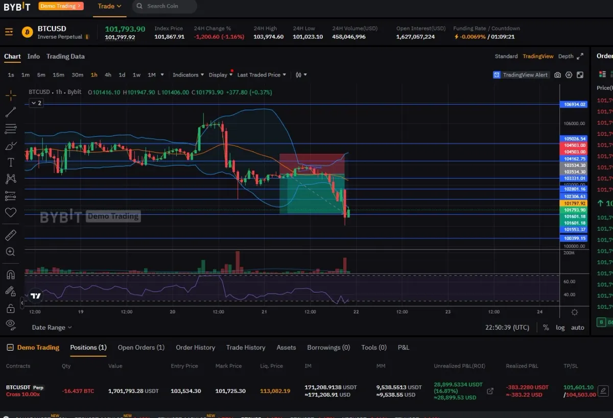4시간, 1시간 차트에서 지지선과 저항선을 설정해 보았고 플래그 패턴이라 생각해 지지와 저항을 확인 후 저항선을 돌파하지 못하는 모습을 보고 내려오는 저항선 근처에서 숏 포지션 매수 진입했습니다.