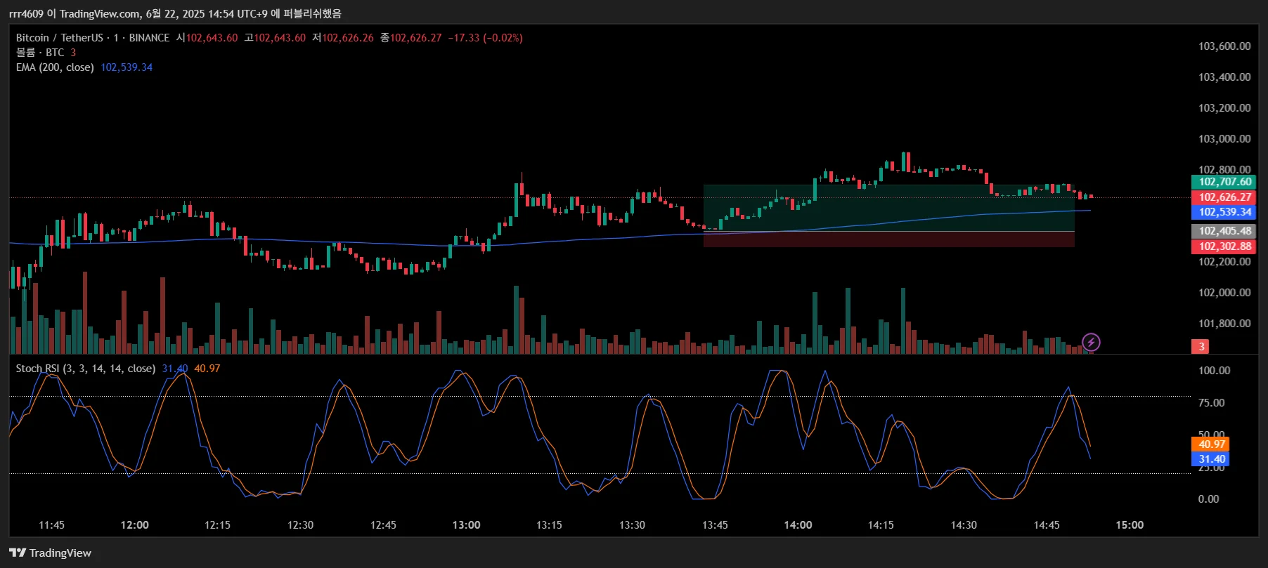 Rsi 25이하로 과 매도 상태 확인 거래량이 줄어들면서 횡보 박스권으로 예상함 200이평선 지지대로 설정후 손익비 3:1로 롱 진입
