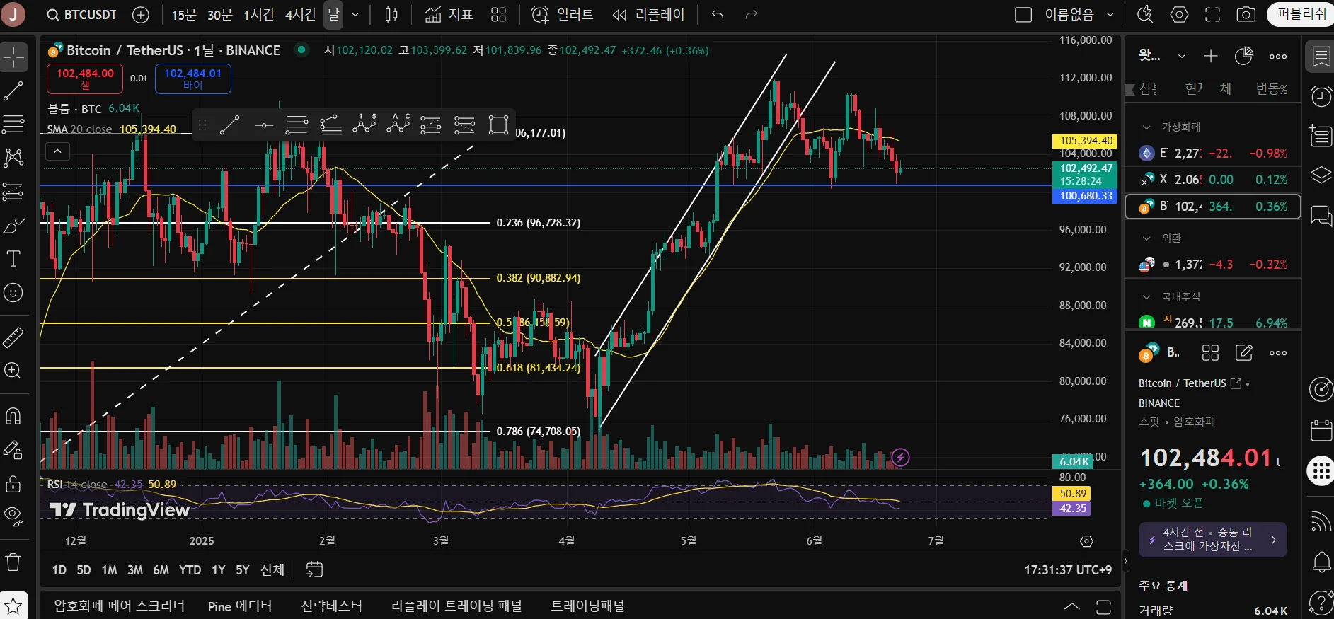 2025 4월부터 상승구간을 거치다, 5일부터 지지선을 뚫고 횡보하는 것으로 예측됩니다.