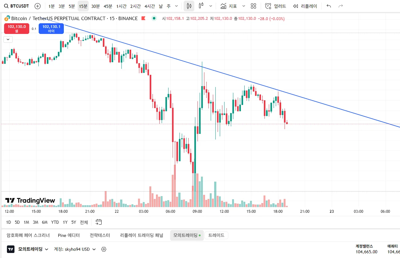 저항 추세선을 기준으로 숏을 잡을 준비를 하고 있음