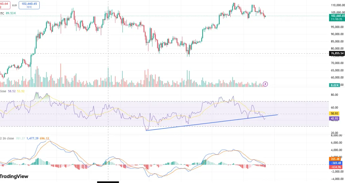 가격은 점점 하향하고 있지만 rsi 지표 저점이 점점 상향하며 올르며 더블 바텀 후 상승다이버전스로 판단하여 미션 올립니다~