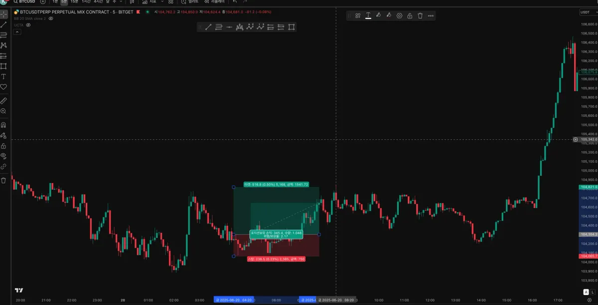 익절가는 5분봉 전고점으로 잡고 손절가는 아랫꼬리 밑으로 잡아 손익비 1:2 거래를 예상했으나,