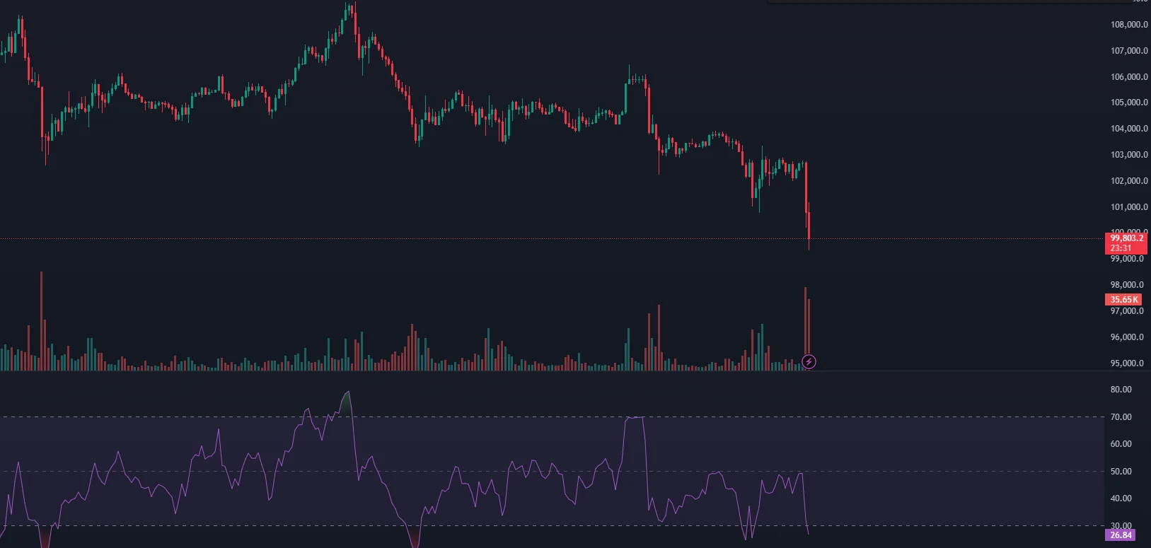 꼭 과매도 구간이 아니더라도 RSI의 기울기가 급격히 꺽여서 내려갈 때 큰 폭으로 떨어지지 않나 싶습니다.