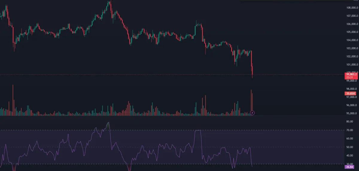 비트코인 1시간 차트이고 RSI가 과매도 구간일 때, 음봉이 나오는 패턴이 더 많이 관측되고 있습니다.