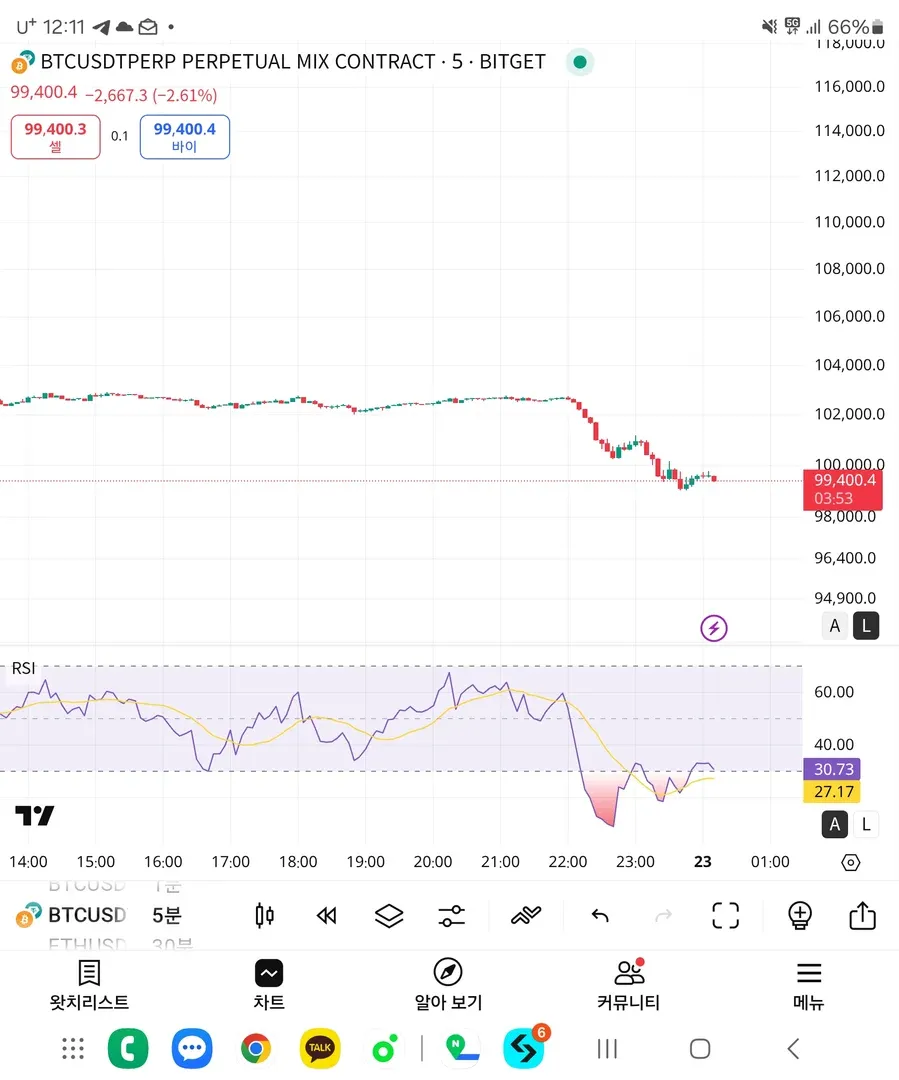 물론 낮은 시간봉일수록 신뢰도는 떨어지지만 현재 날봉 rsi 값이 20정도라는 것을 고려하면