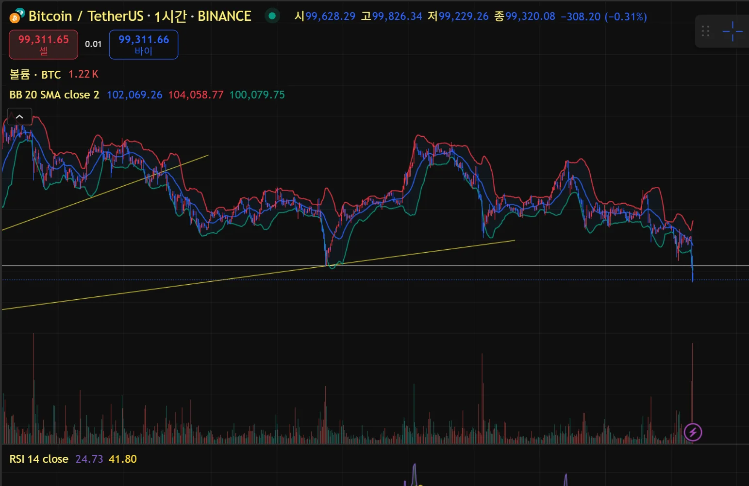 매수 근거: 볼린저밴드 하방 돌파, 과매도구간