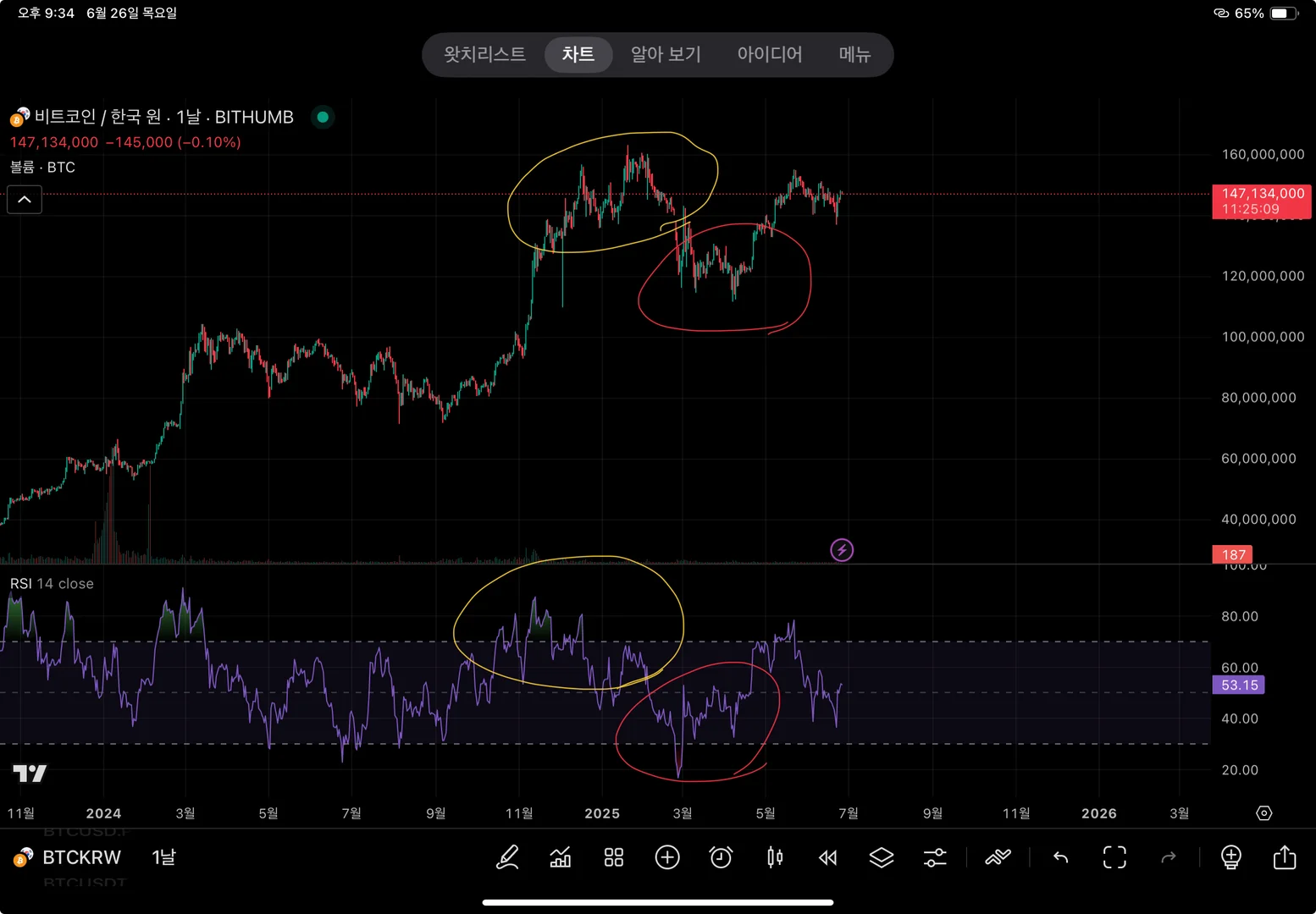 빨간색은 상승 다이버전스로 보입니다