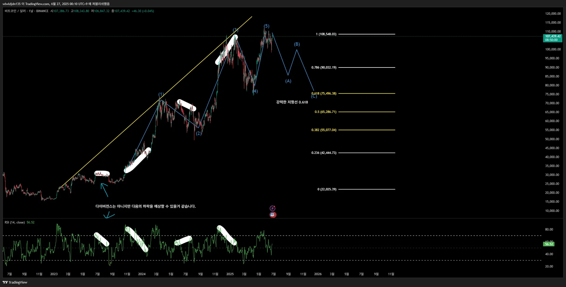 RSI 다이버전스 구간을 체크해보았습니다.
