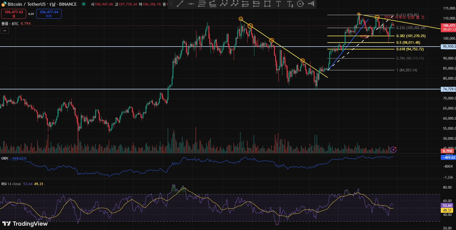 5월 22일 기준( 최근에서 가장 고점)으로부터 차트를 보자면 가격이 하락하고 있고 RSI도 하락하고 있고 거래량도 하락하고 있음 -> 하락 추세가 지속될 것으로 예상한다