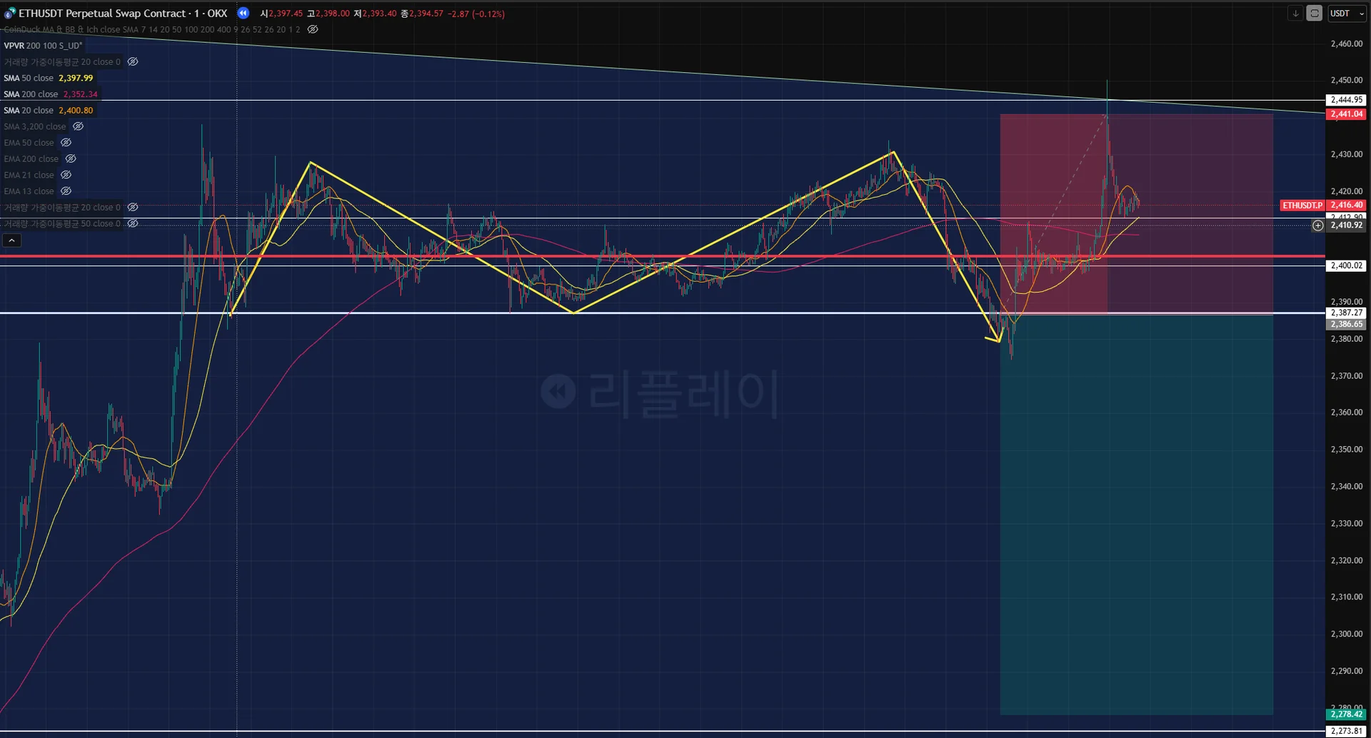 넥라인을 하단 돌파해서 리테스트한다고 생각하고 숏진입 하였습니다.