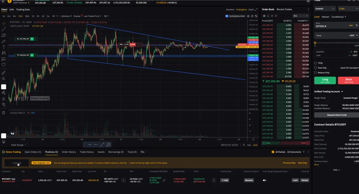 트레이딩뷰 비트 차트 기준으로 채널을 그렸을 때 상단에 닿은 후 하락하는 모습 확인하고 숏에 진입해보았습니다.