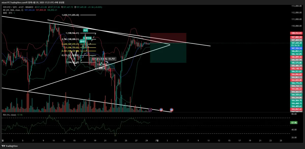 위 추세선 근처를 두들기고 수렴이 거의 다 왔다고 판단했기에