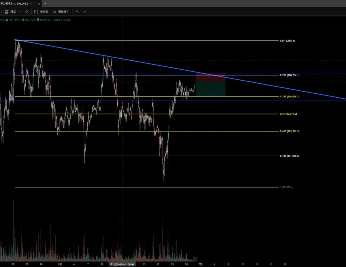 그리고 4시간 봉으로 봤을때 추세선에 곧 닿을 수 있는 상황입니다 그렇기에 숏으로 진입할 예정입니다