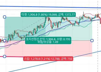 지지선 맞고 그대로 올라갔으니, 횡보 하더라도 저항선까지는 상승할거라 판단 하였습니다.