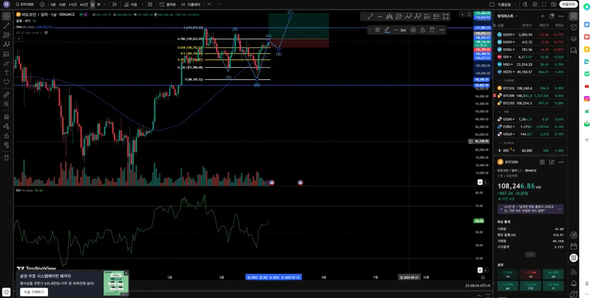 - RSI도 현재 58 수준으로 과매수 구간은 아니므로 추가 상승의 여지가 남아 있을 것으로 보임