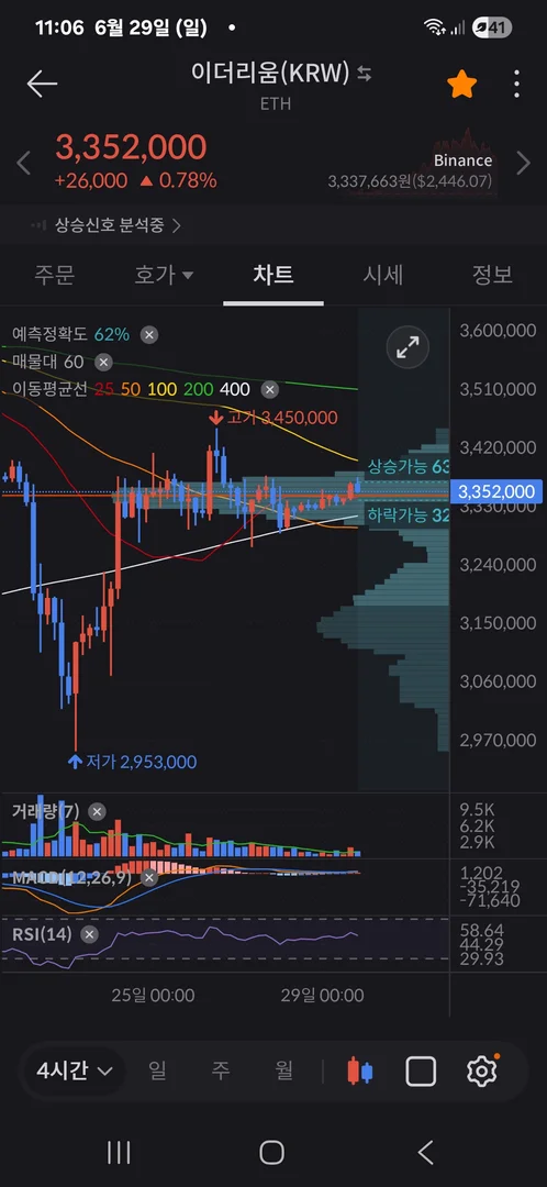 선발대 진입 직전 고가 도달 시 1차 정리 및 고가 지지 및 이탈 추이를 보며 분할 매수 손절선은 동일
