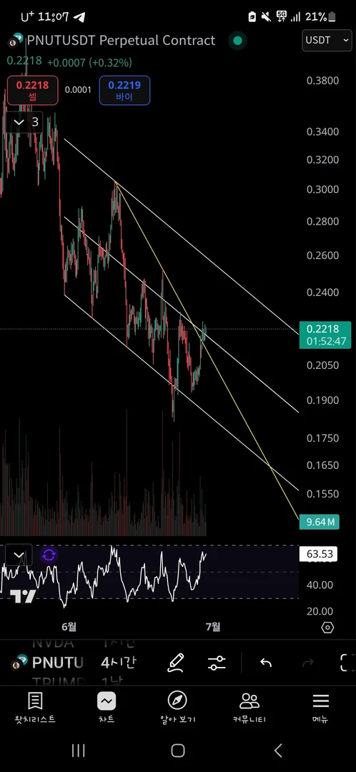 1. 하락채널 fake out 발생 (하락채널 fake out 발생시 상단 까지는 상승 가능성 높은 패턴)