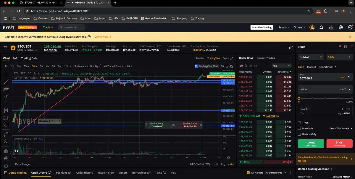 국내와 해외 주식 거래소는 모의매매 기능이 있는 버전중 바이비트를 통해 매수를 할 계획이었습니다.