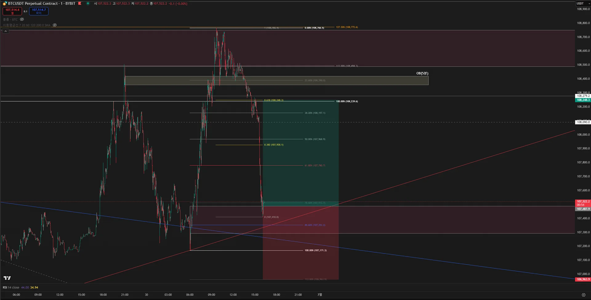 2) PL: 106763.9 - 저점이 나왔다는 판단 하에 618 되돌림 부근을 잡아봤습니다.