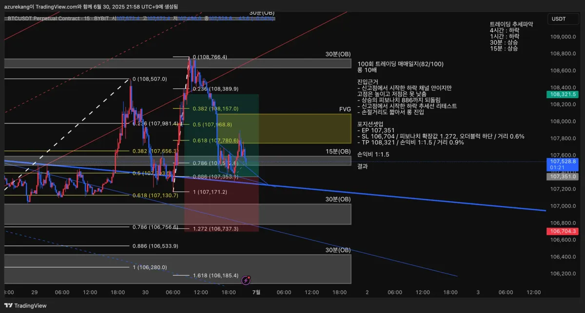 - SL 106,704 / 피보나치 확장값 1.272, 오더블럭 하단 / 거리 0.6%