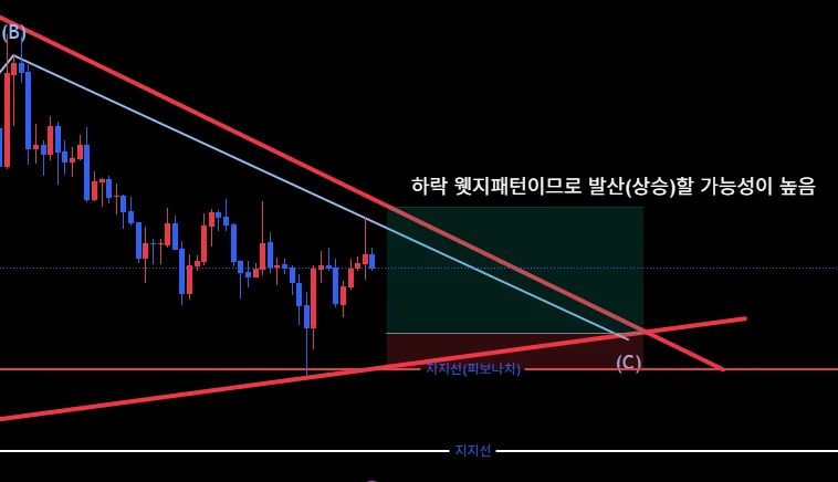 분석결과 하락웻지 상태로서 향후 반등 가능성이 매우 높다고 판단되어 2,800에 진입하여 -3%/13%의 손익비를 계산하여 6% 수익 시 반액 익절할 예정이다.