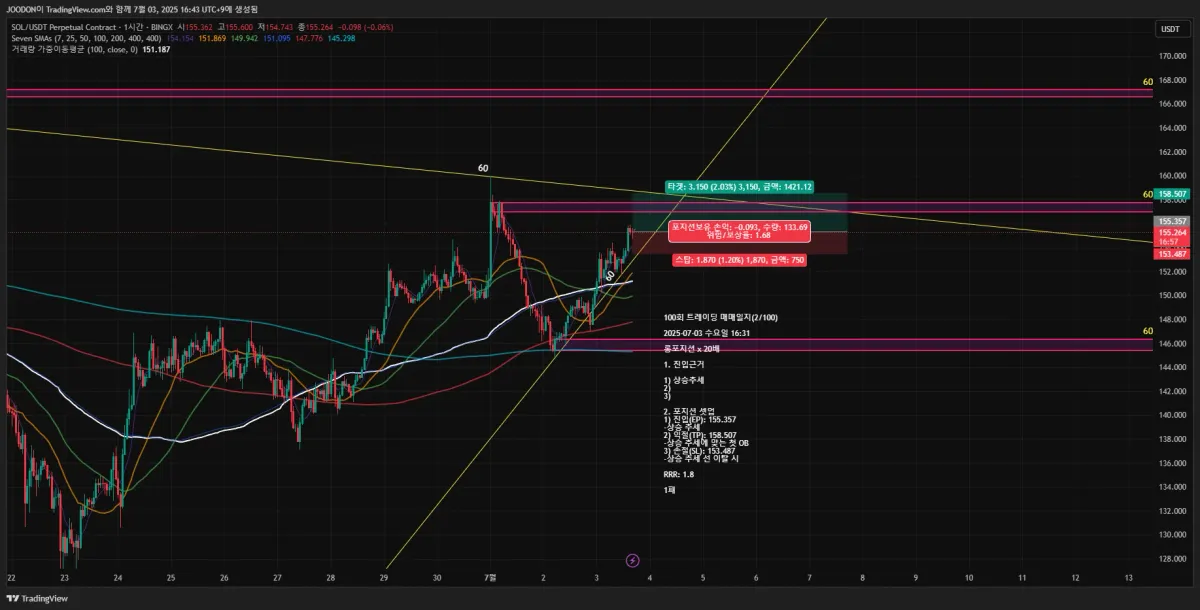 패: 지난번에 포지션 분석 하고 진입가를 현재가보다 크게 다르게 설정했다가 포지션 진입이 안 되고 2일 쯤 되어 포지션 진입되고 손절 당하여 분석 시점 바로 포지션 진입했다가 낭패 봄