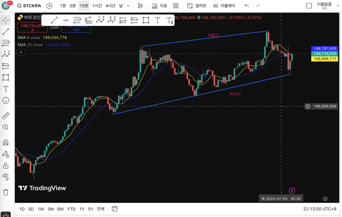 지지선과 저항선이 조금씩 좁혀지는 양상이네요.
