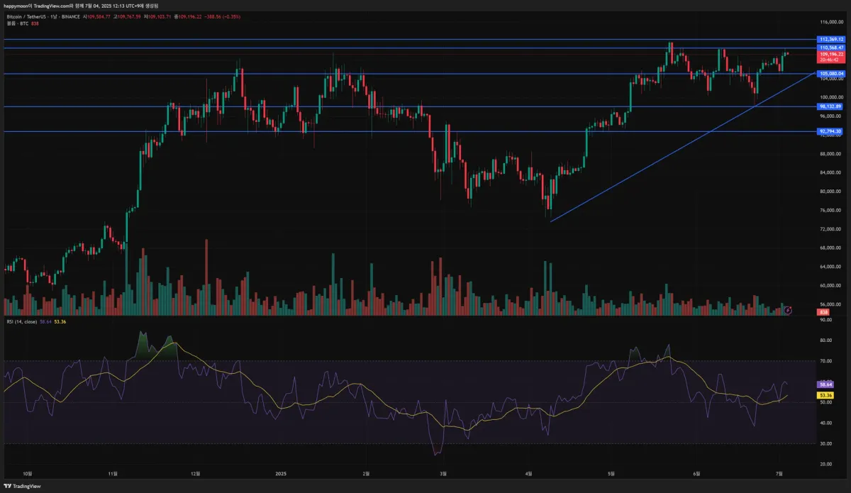[30일 챌린지 34기] BTCUSDT 1일봉 지지선, 저항선과 추세선