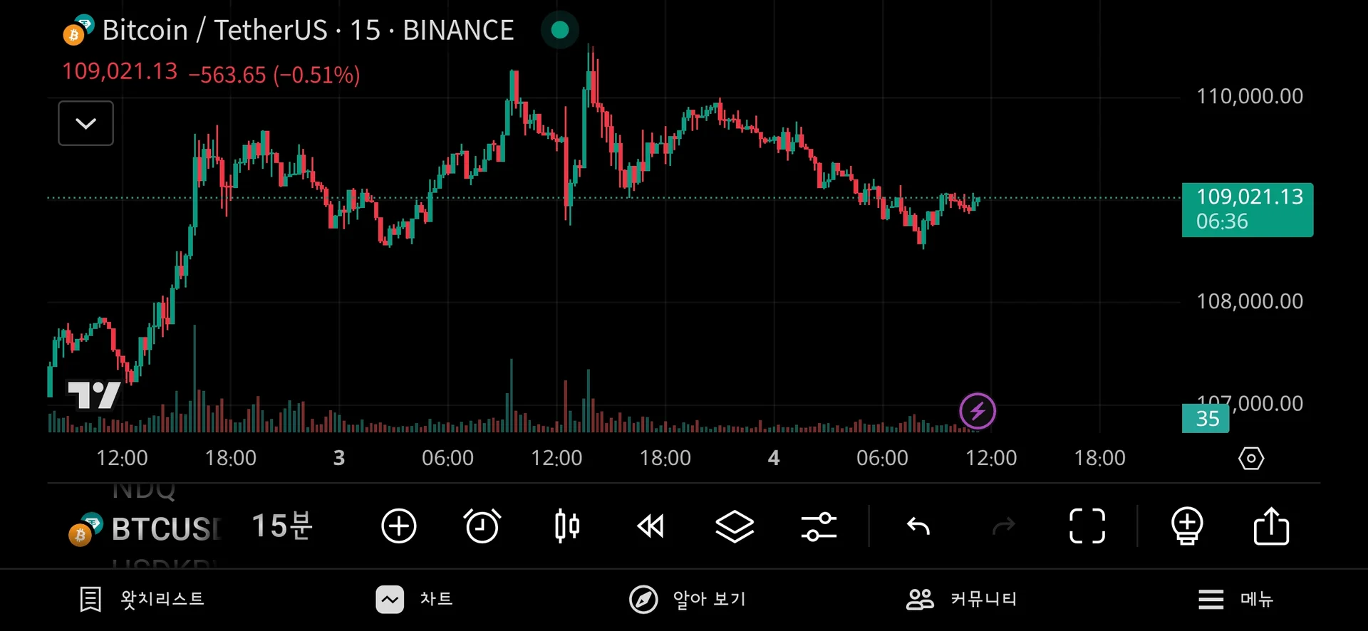 지금 폰밖에 못써서 트레이딩뷰 어플사용해 보고 있는데 아직은 좀 어색하네요.