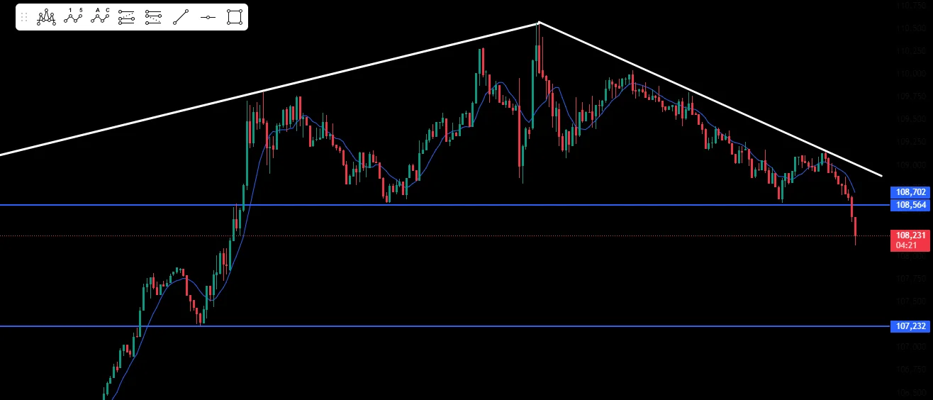 의미있는 지지선으로 맨 밑에 있는 107,232와