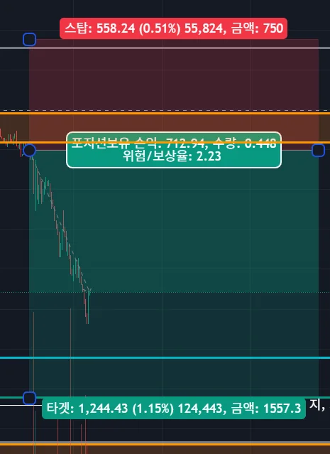 심리: 1.618 까지 모든 비중을 끌고 갔다면 기분이 더 좋았겠지만... 중간 중간 익절은 무조건 해야한다.... 한 번 맞췄다고 자만하지 말자.