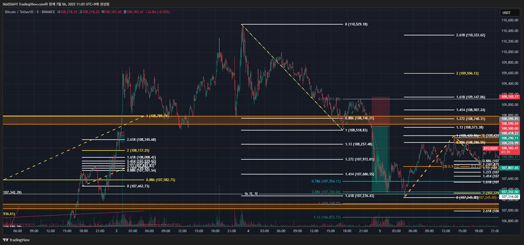2차: 107350(1.618 전 지지선
