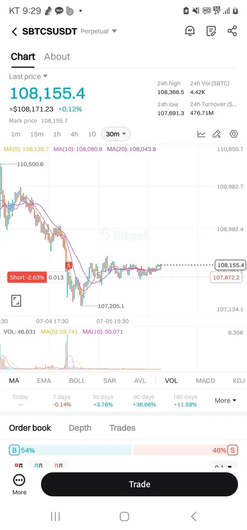 1일평균선은 보면 고점과 저점이 점점 낮아져서 숏을 생각했습니다. 실제로 숏을 넣어서 당일에는 플러스가 나왔지만 보지않는 상황에서 나왔기때문에 수익을 실현하지 못했습니다.