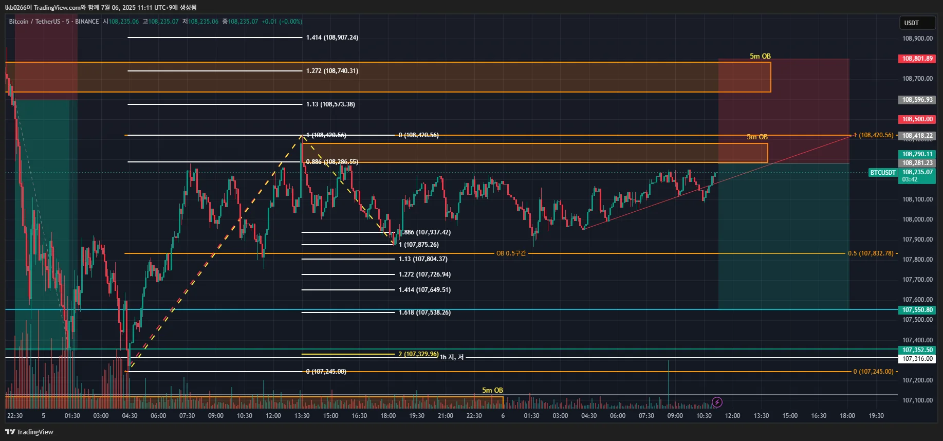 -5m OB 만들고 어라? 고점을 1.13 말고 1.272로 잡아보자. 손절 거리 늘리기.