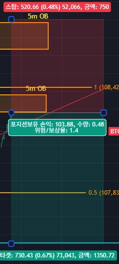 복기: 체결이 안된 상태로 0.5 OB 부근 찍고 미친 반등과 함께 미체결 된 계약이 체결되며... 손실이 되었네요..