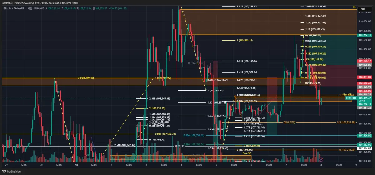 -5m OB 만들고 어라? 고점을 1.13 말고 1.272로 잡아보자. 손절 거리 늘리기.