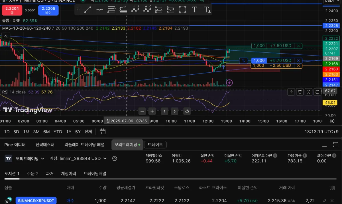 트레이딩뷰에서 모의트레이딩을 해보았습니다.