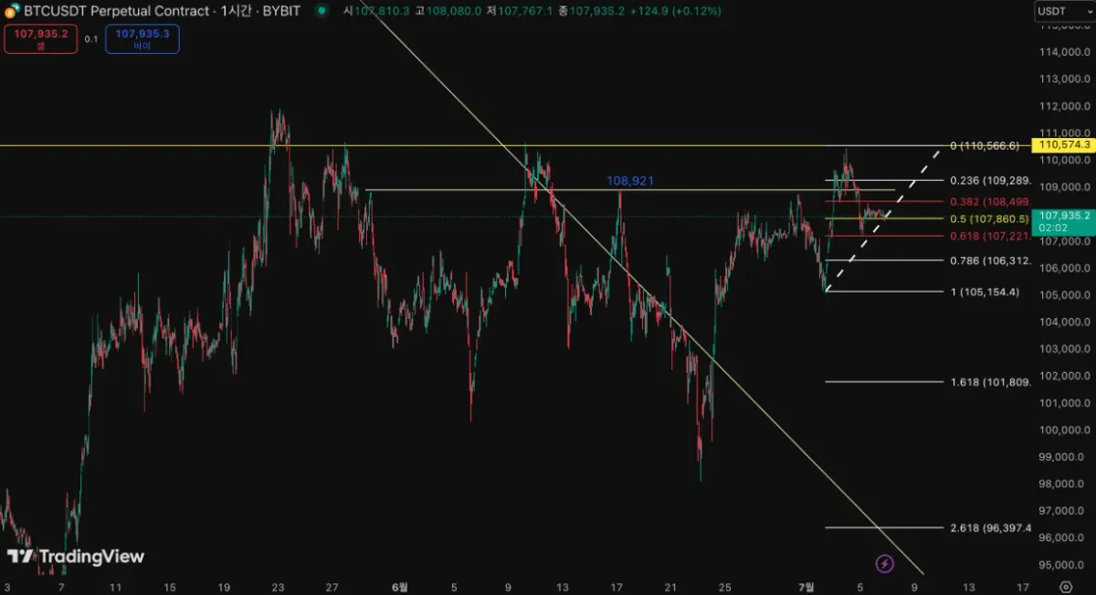 상단 110.5 부근에서 저항 중이라는 판단이 들었습니다.