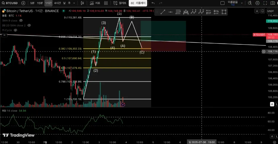 2. 엘리어트 파동으로 보았을 때 상승또는 조정으로 겹치는 파동으로 생각함