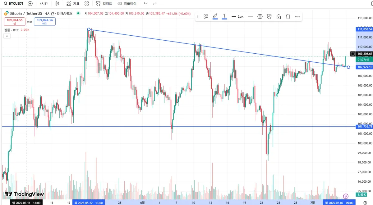 비트코인 4시간 봉기준 추세선 작도 실습 내용 입니다.