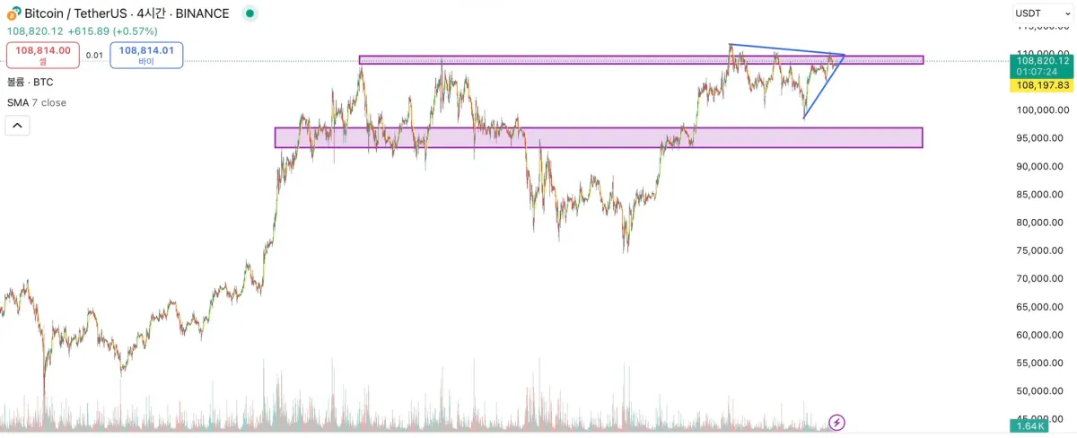 이에 실패할 시 지지 구간은 95000 불로 예상됩니다.