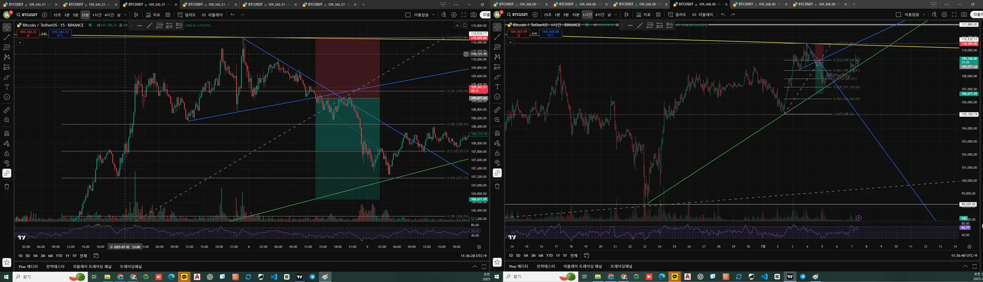 작은 프레임에서는 좌측 15분봉처럼 삼각수렴중이라고 판단