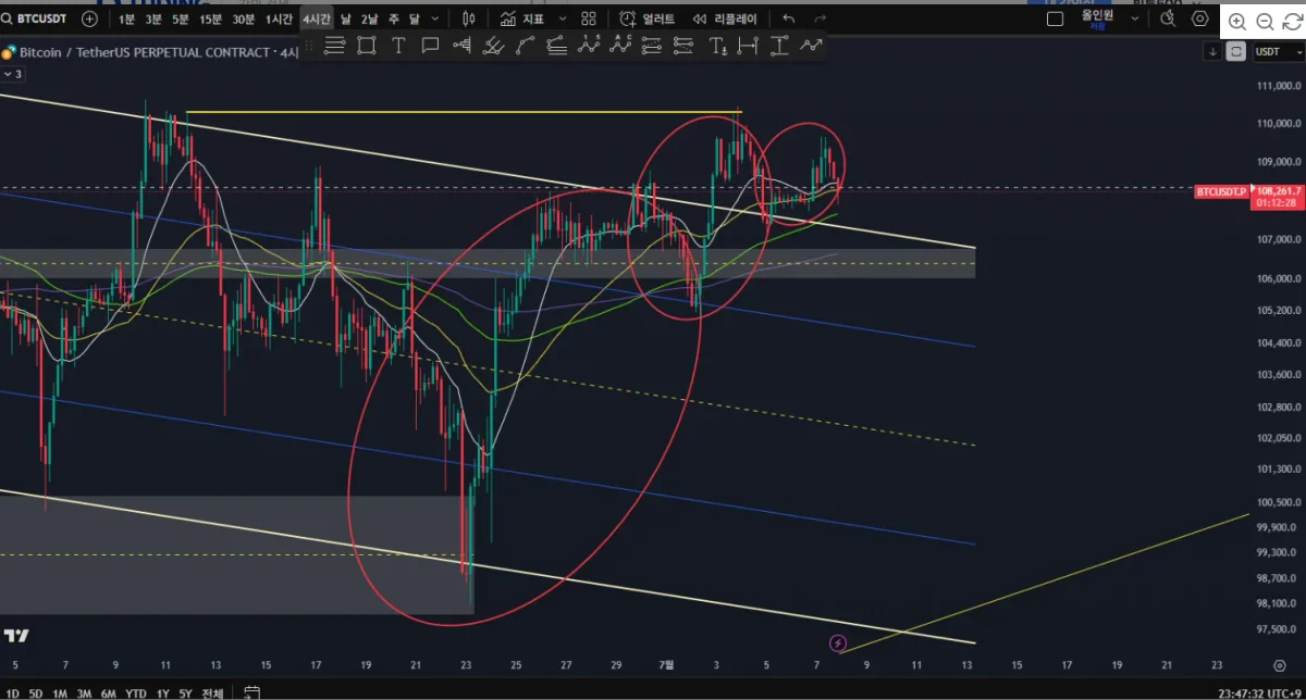물론 더 하락할수도 있고, 저 자리를 안찍고 그냥 상승해버릴수도 있다. 비트코인은 항상 예측을 벗어난다...