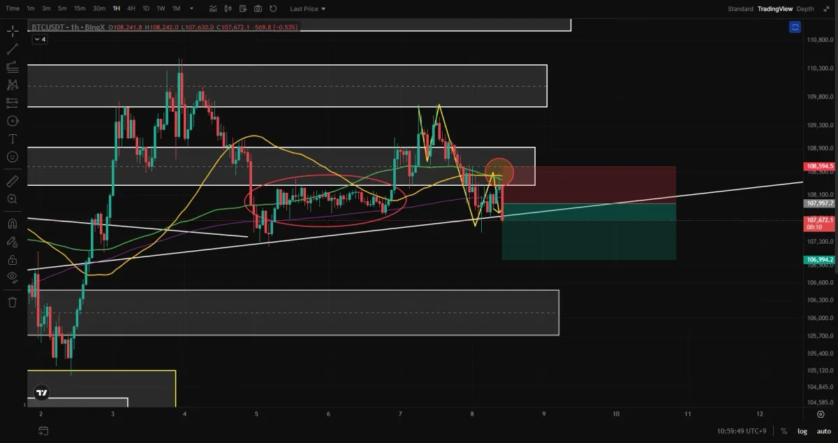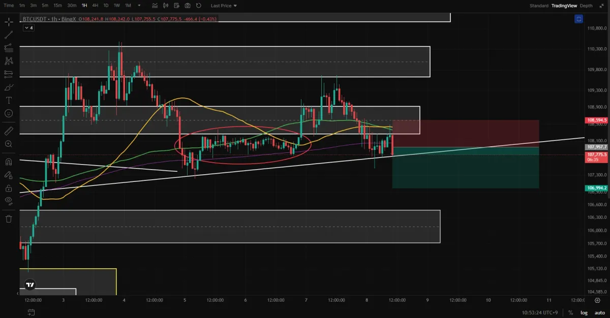 - SL 1108,603.1 (똑같은 관점에서 200이평, 100이평이 모인 자리에서 하락숏이 출발햇으므로, 이자리를 다시 말아올리면 롱으로 전환될 가능성이 있다.. 그래서 이 자리에서 손절.)