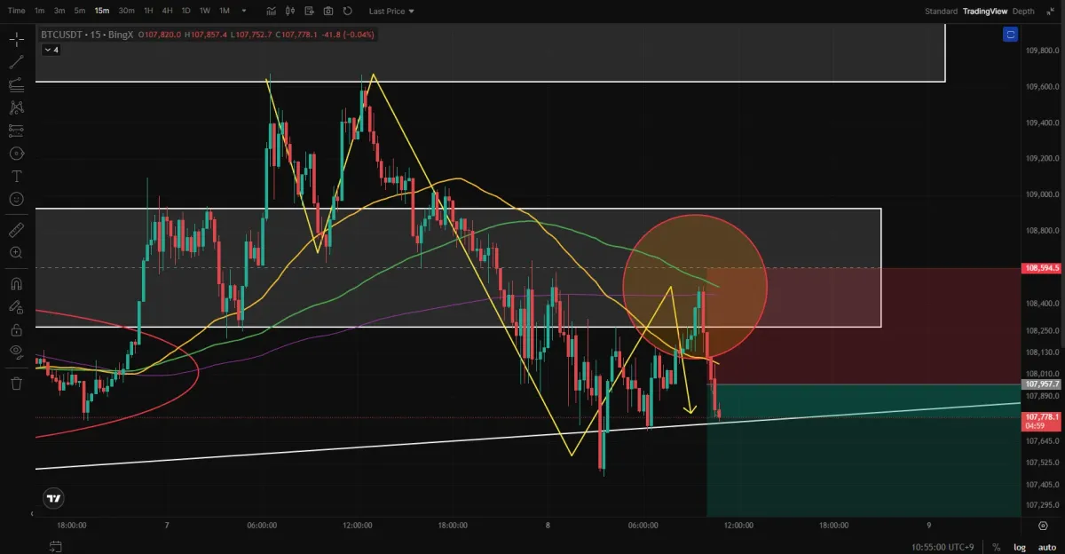 15분봉에서 시작된 하락추세가,