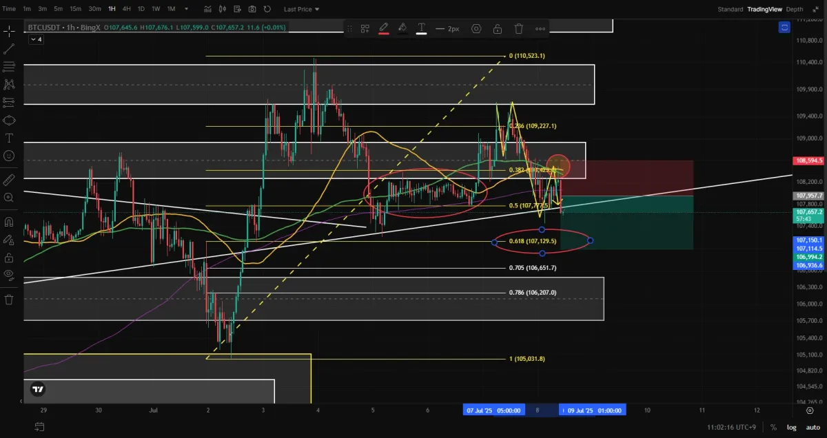 7월 2일 상승이 시작된 자리에서부터 피보나치를 그어보면