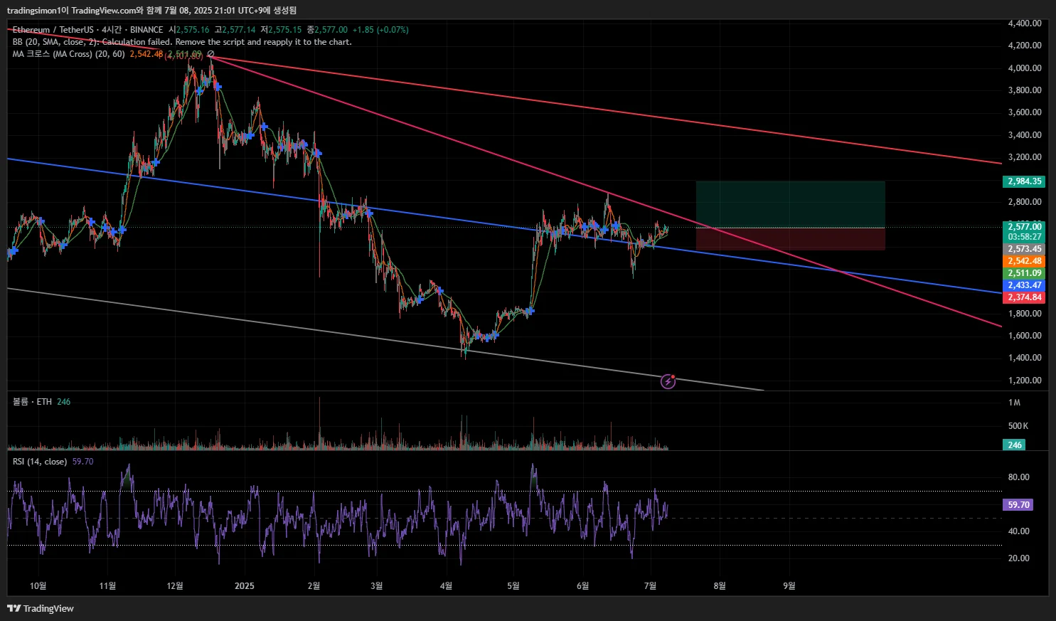 제가 그은 피보나치 기준 0.5 구간을 손절가로 두고 롱 진입 하였습니다.