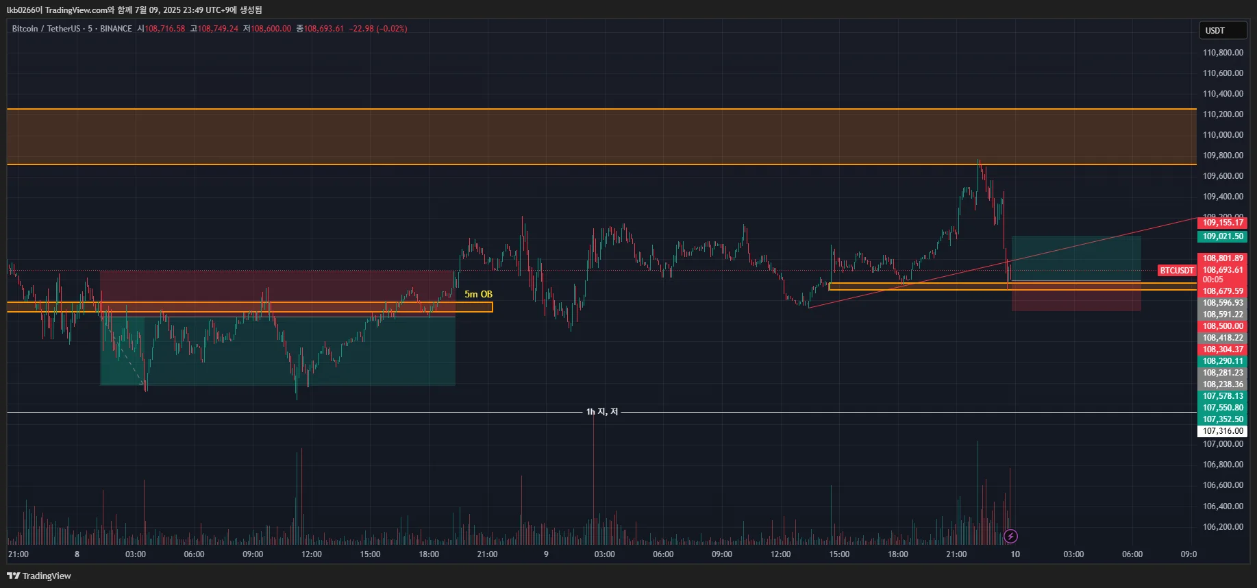 -5m OB를 지지하고 짧게 반등할 것 같아 짧게 먹고자 함.